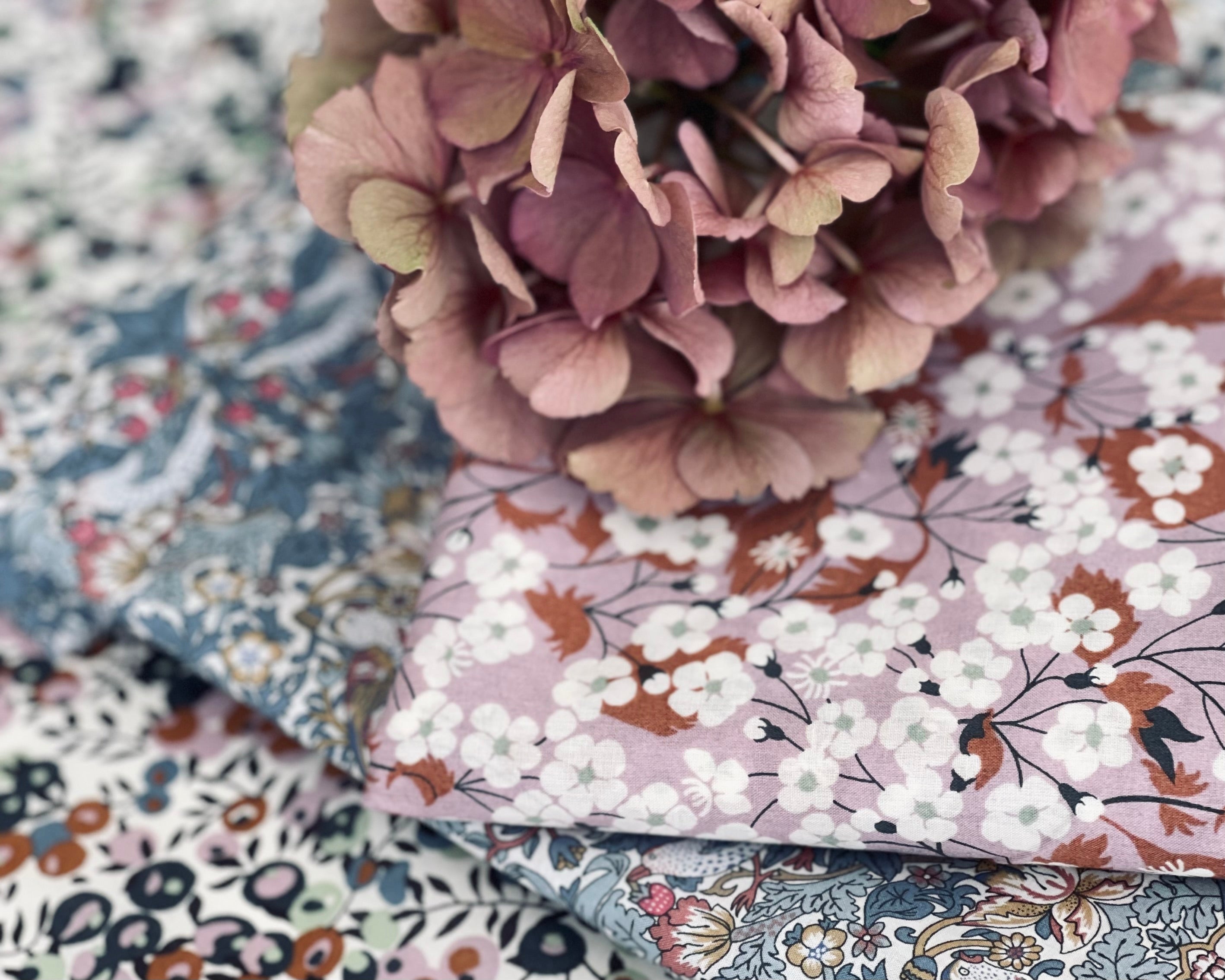 Liberty stof "Nell, Annie and May" Blomstret bomuldsmetervare Tana Lawn.