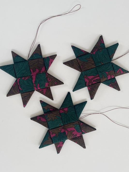 Braided Christmas stars 4 pcs / Assorted colors WITH materials - KIT