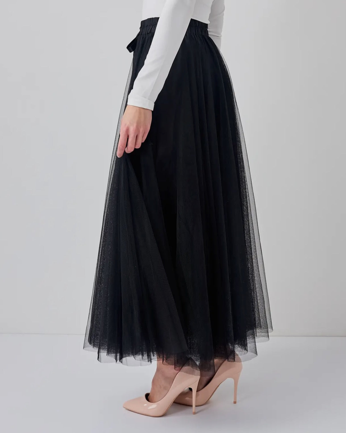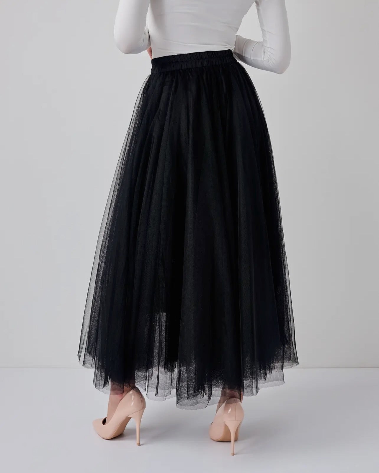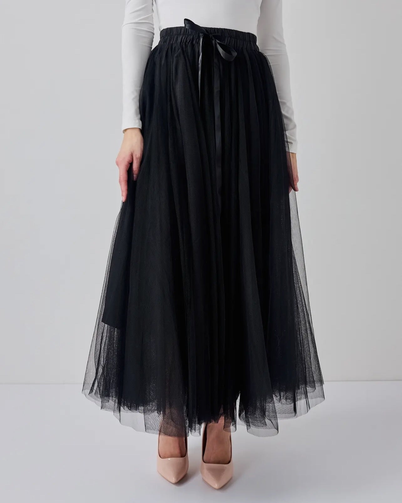 Lang nederdel i tyl med en fin elastisk linning. Mere end 11m tyl er der brugt til denne ikoniske nederdel. Lag med masser af vidde, fremhævet af rynker, der giver en flæseeffekt forneden. Den fås i en række flotte farver. Det lette tone i tone foerstykke gør at nederdelen ikke er gennemsigtig.