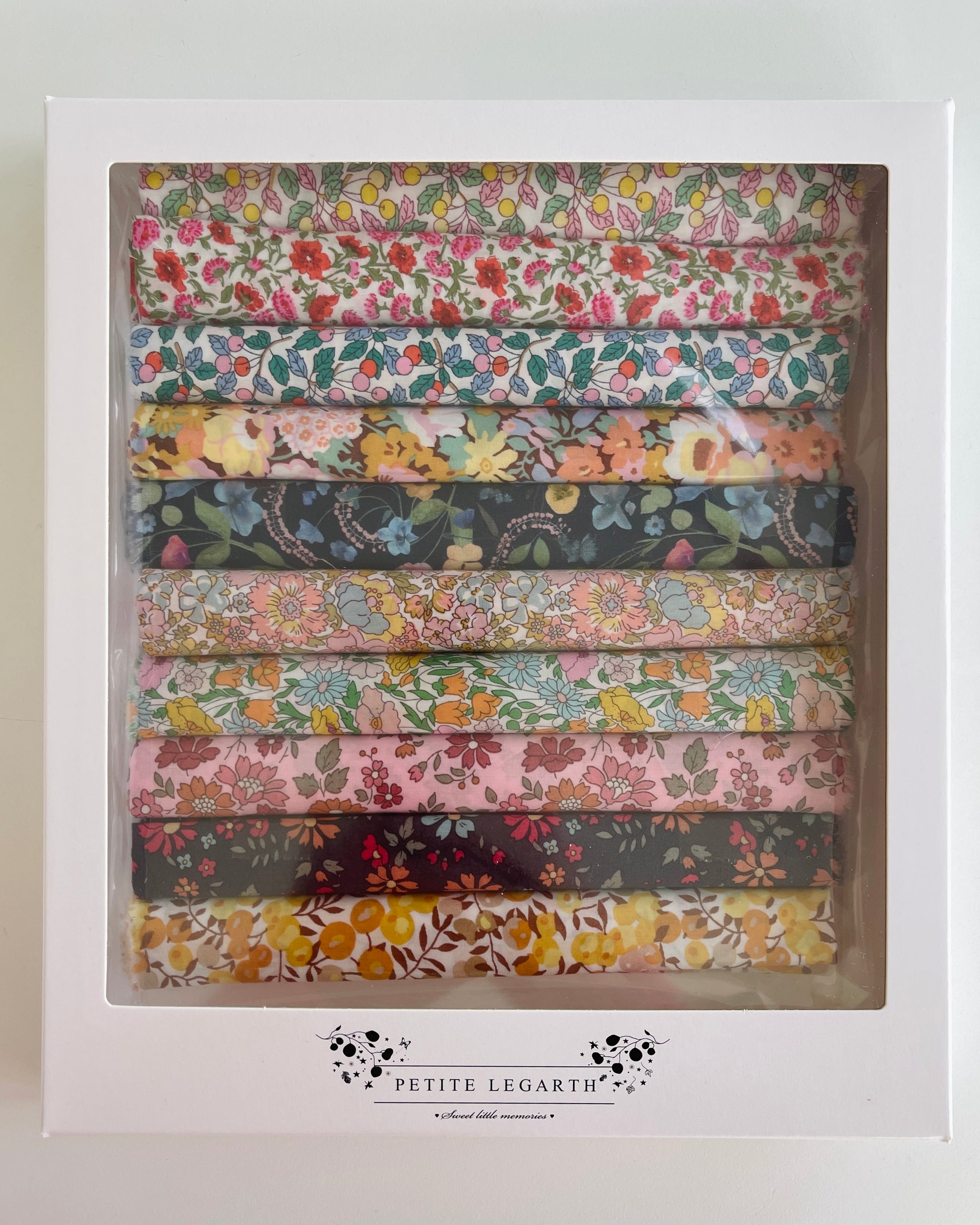 Fin gaveæske med 10 forskellige Liberty “Ninth” stofstykker i assorterede farver - kun smukke prints man ikke bliver skuffede over :)