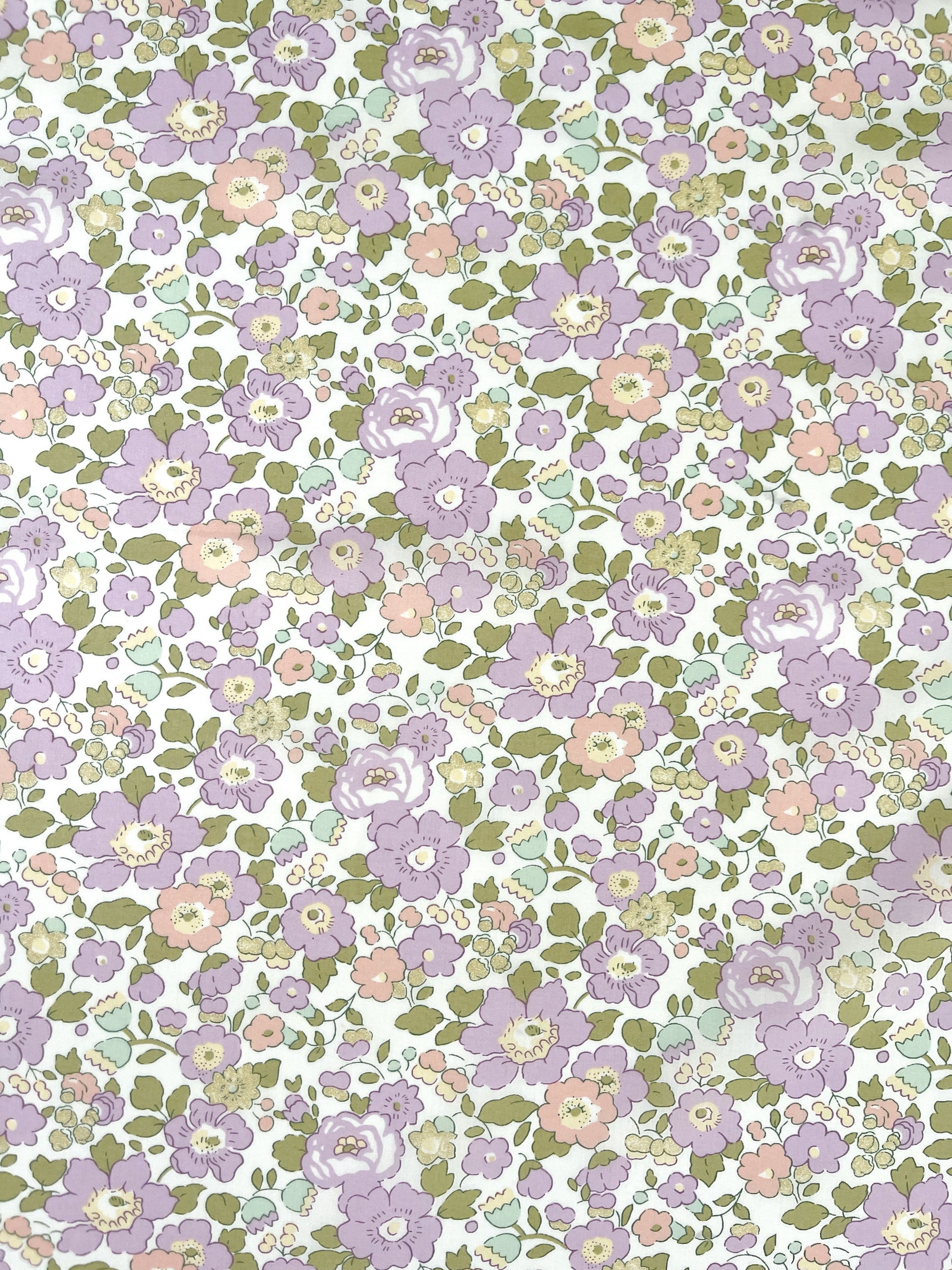 Liberty stof "Betsy Lilla-grøn" Blomstret bomuldsmetervare Tana Lawn.