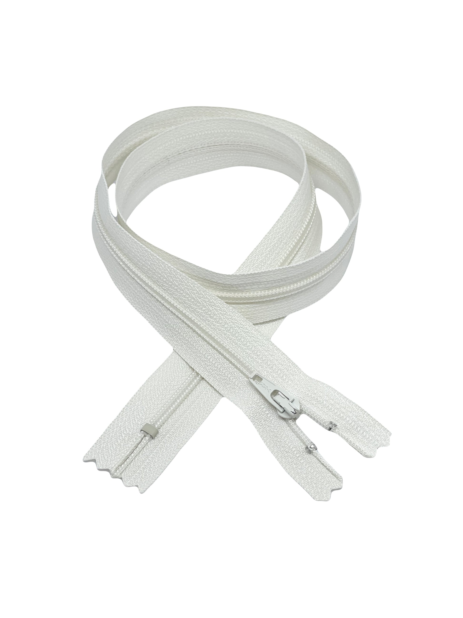the zipper is in soft PVC and can therefore easily be shortened to the desired length. This is done by stabbing the machine a few times over the zipper. that way, the end is attached, and you can cut off the excess piece of zipper.