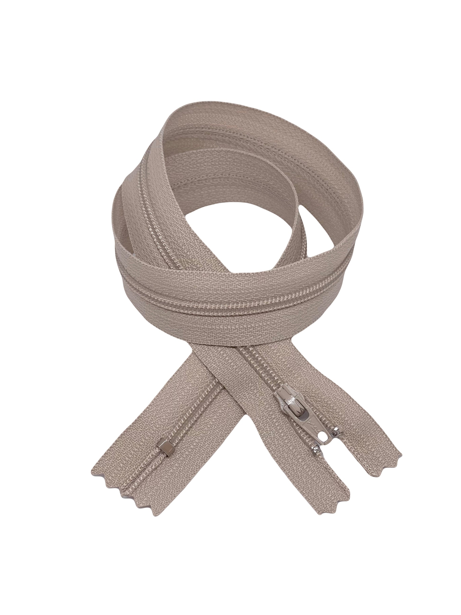 the zipper is in soft PVC and can therefore easily be shortened to the desired length. This is done by stabbing the machine a few times over the zipper. that way, the end is attached, and you can cut off the excess piece of zipper.