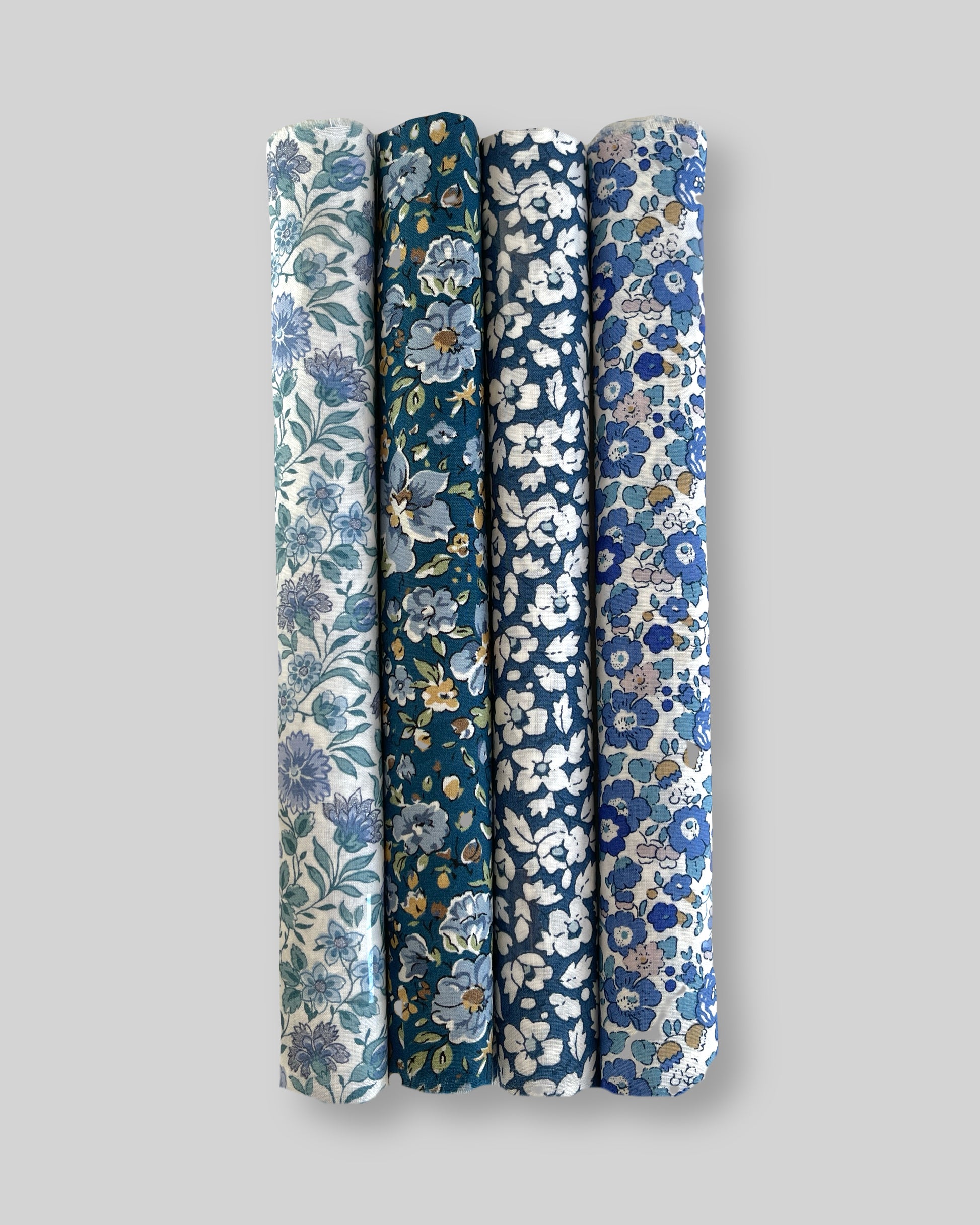 4 smukke Liberty stofstykker i Mix pakke. Print som vist på billede. Alle 4 stofstykker måler 33x45 cm