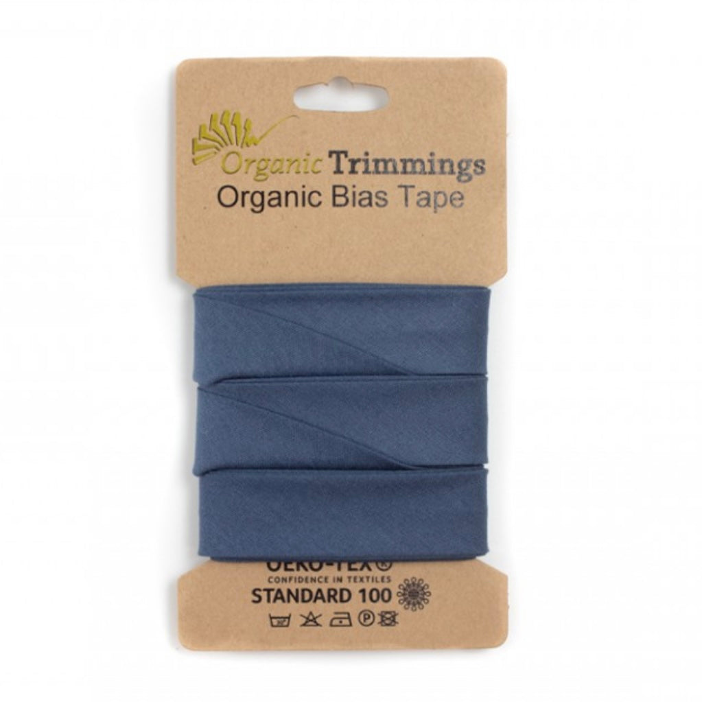 Øko skråbånd 5m - Mellemblå - er et kantbånd i 100 % økologisk bomulds poplin, i en dejlig blød kvalietet.