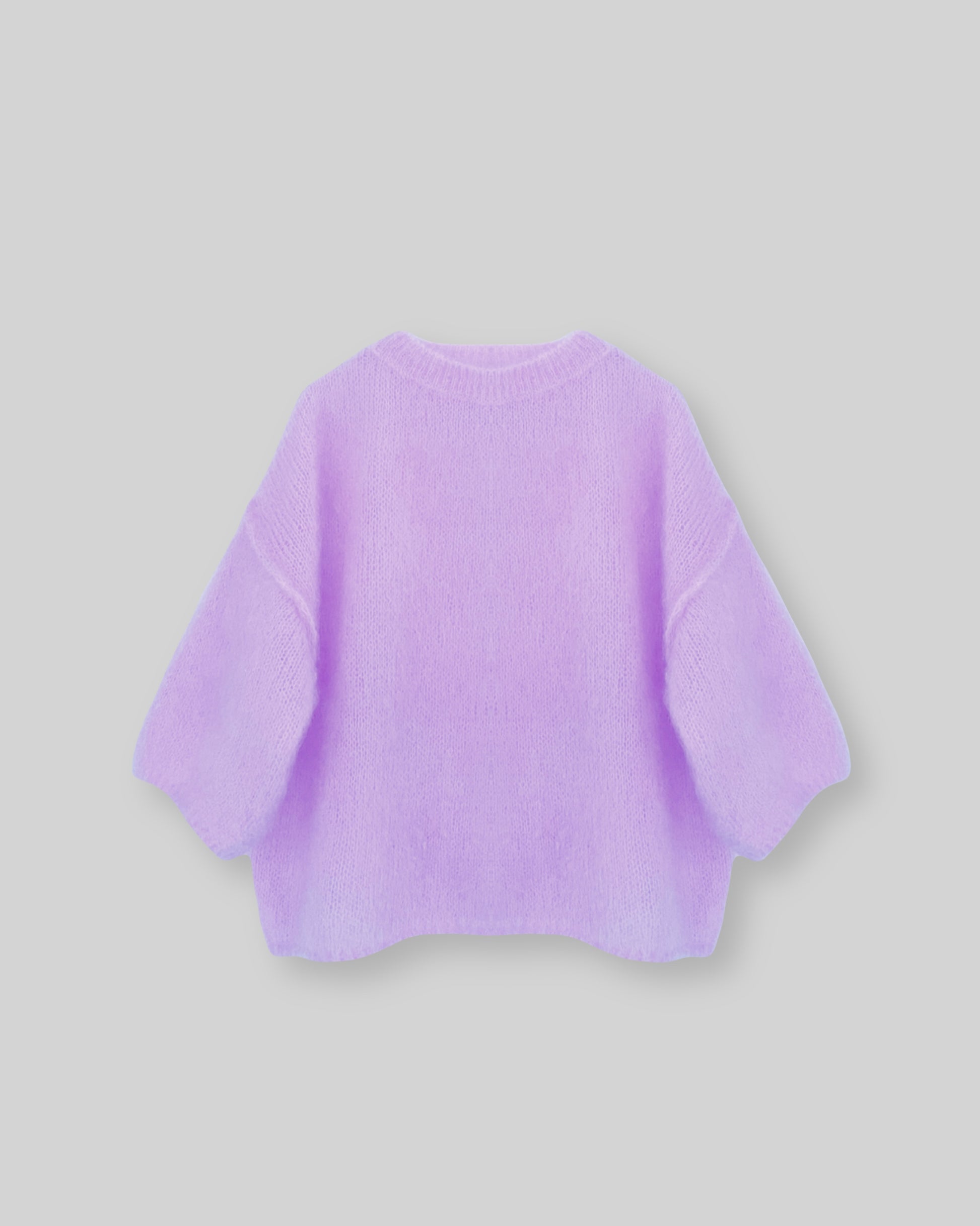 Smuk fluffy kortærmet strik i den smukkeste lavendel lilla farve. 💜