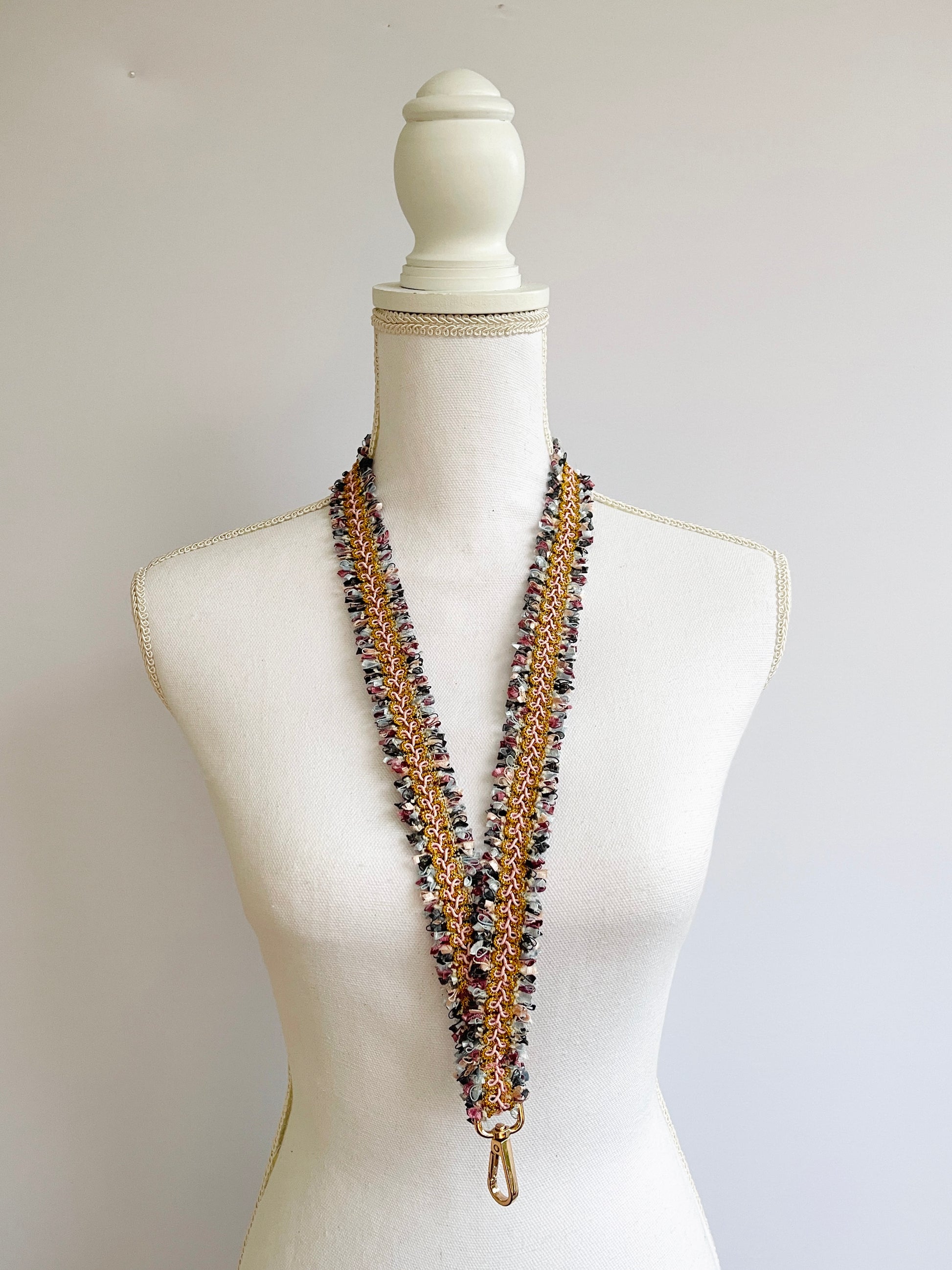Smuk nøglekæde til at hænge om halsen, med karabinhage i guld. Rigtig Chanel style 🤍