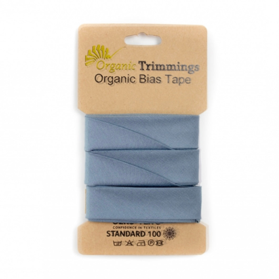 Øko skråbånd 5m - Støvet Blå - er et kantbånd i 100 % økologisk bomulds poplin, i en dejlig blød kvalietet.