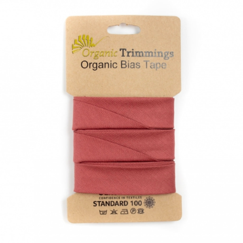 Øko skråbånd 5m - Terracotta Rød - er et kantbånd i 100 % økologisk bomulds poplin, i en dejlig blød kvalietet.